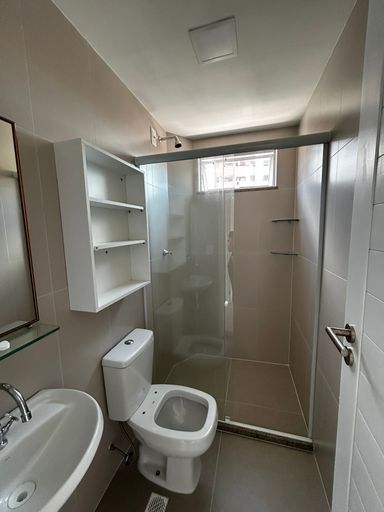 ✔ Banheiro completo com box em blindex, espelho e suportes de vidro